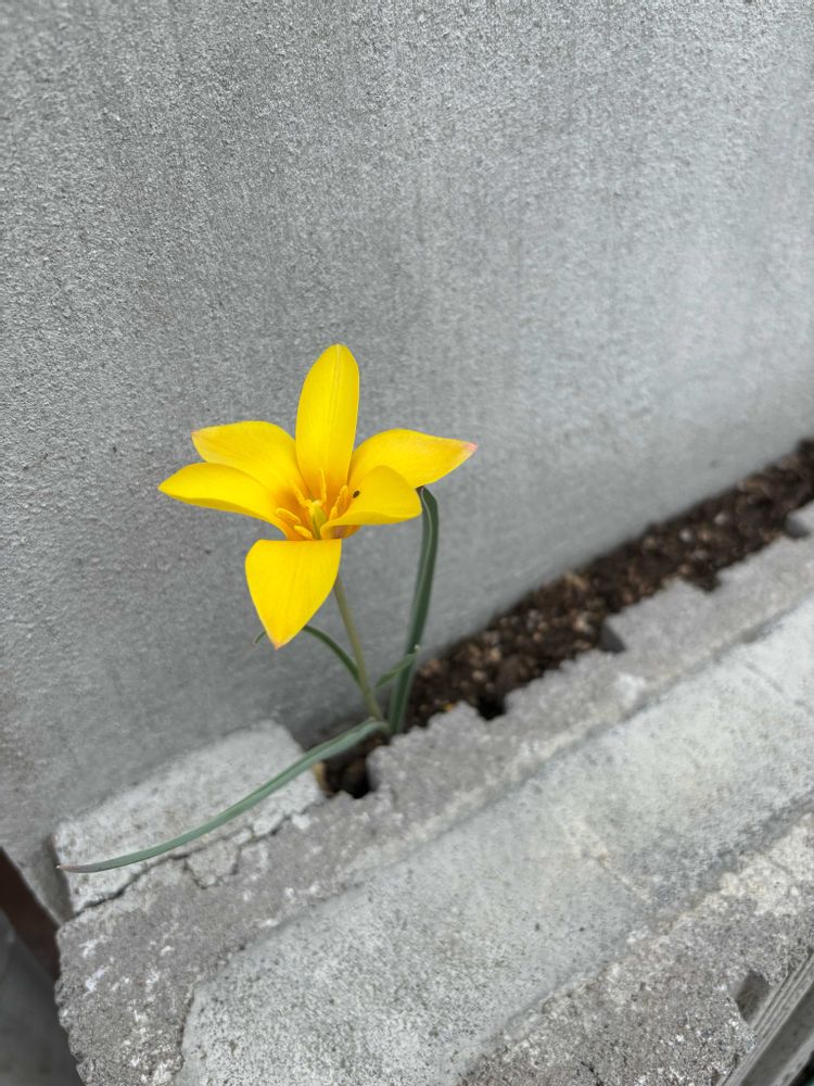 家の壁の隙間に小さすぎる花壇作りました。12月に植えた原種チューリップだけ。せ、狭くてごめんね