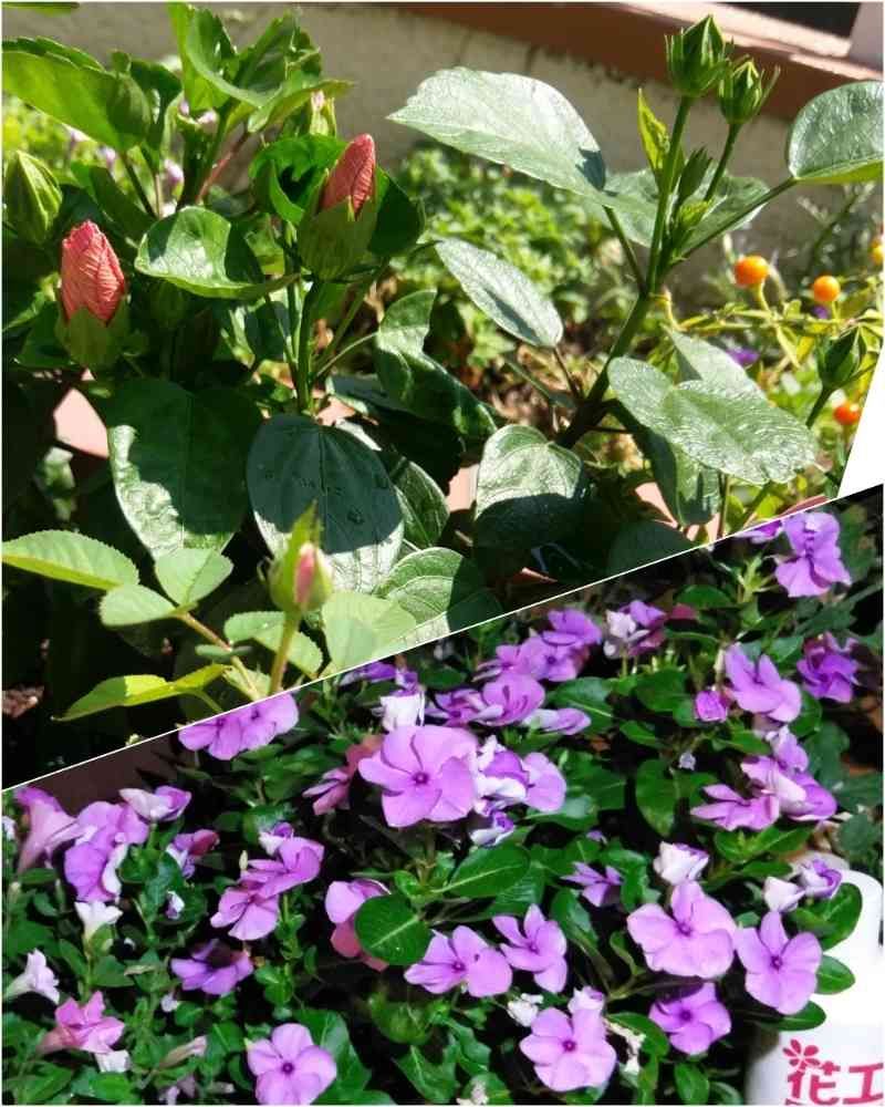 小さな庭,ニチニチソウ,ハイビスカスの投稿画像