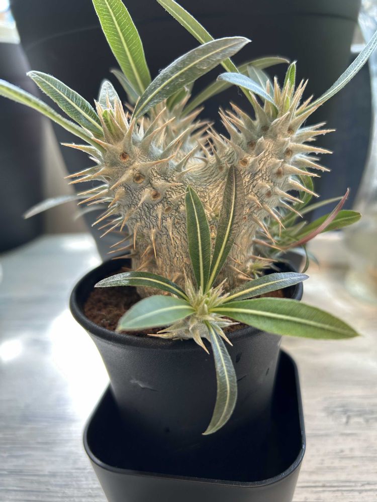 成長記録😊パキポディウムデンシフローラム😊1年前はさっきの恵比寿大黒さんとよく似たお姿で可愛かったのにこんなになってしまいました😊びっくり🫢です〜