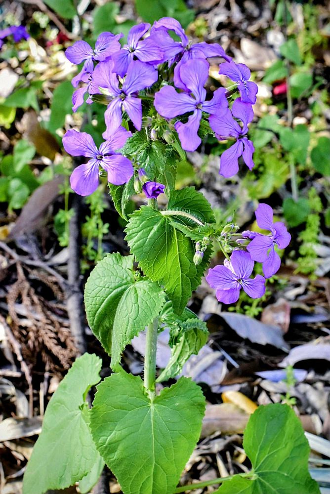 ムラサキハナナ(ショカツサイ)に 極似の この植物・・・