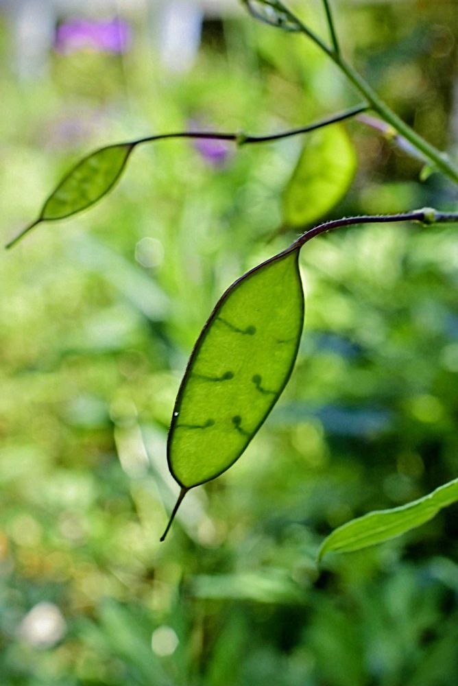 花後の果実は 薄っぺらな小判形をしていて、中の種子が 透けて見える程です (5枚目)