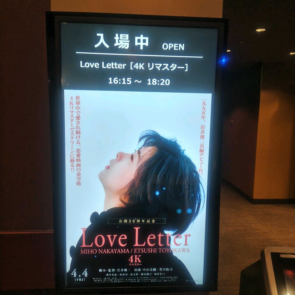 久しぶりに映画が見たくて探していたら中山美穂さんの「Love Letter」がやっていたので見てきました💌
