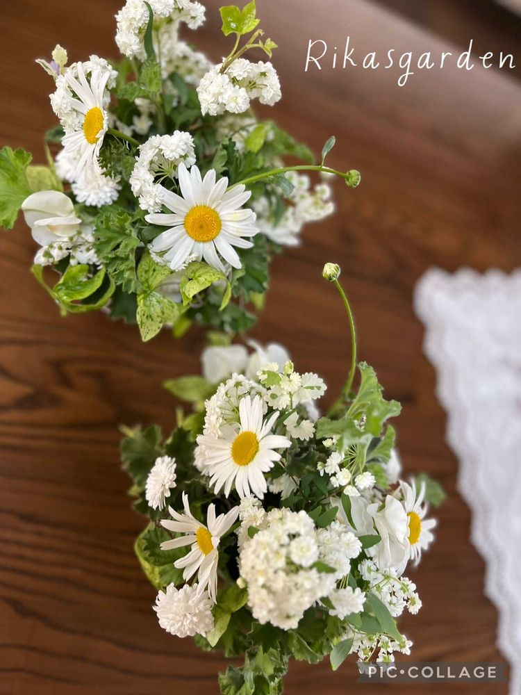 ①今日はコデマリが咲き始めたので、白✖️グリーンのアレンジにしました。