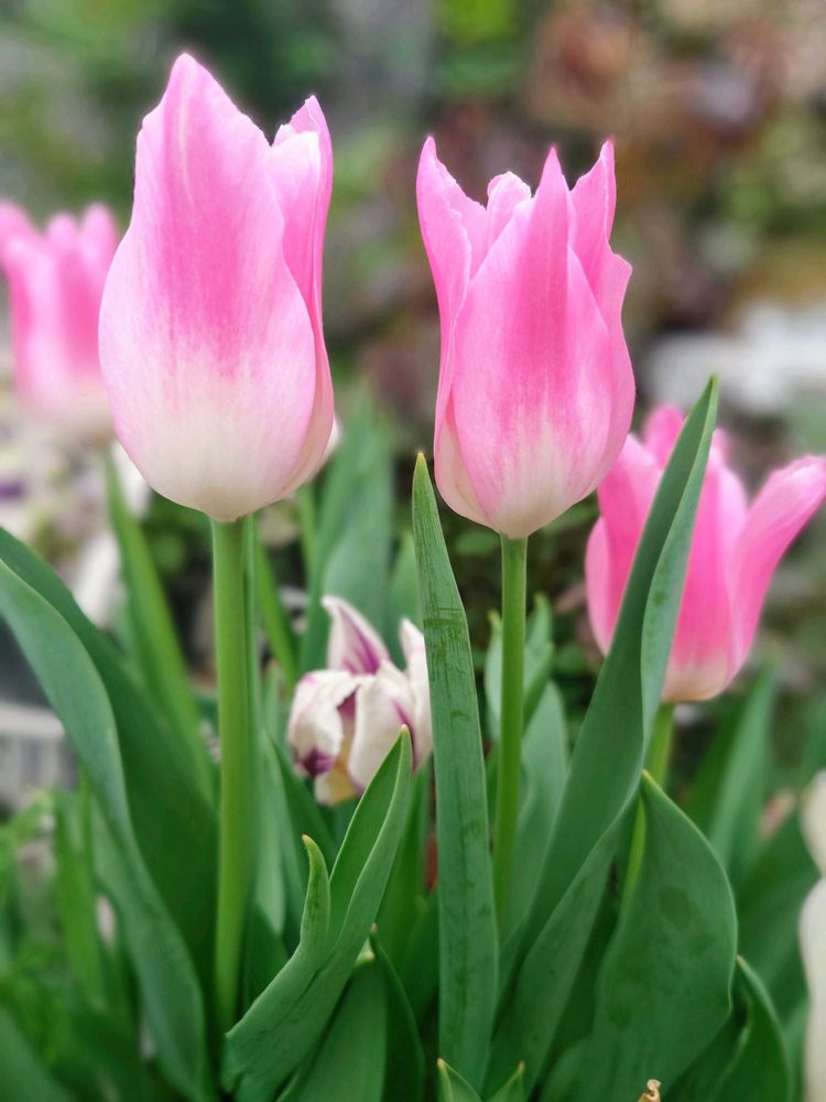 白っぽいチューリップの後にピンクのチューリップが咲いてきました🌷