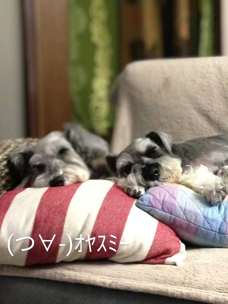 仲良くおやすみするアンディ&ユンちゃん🐶🐶