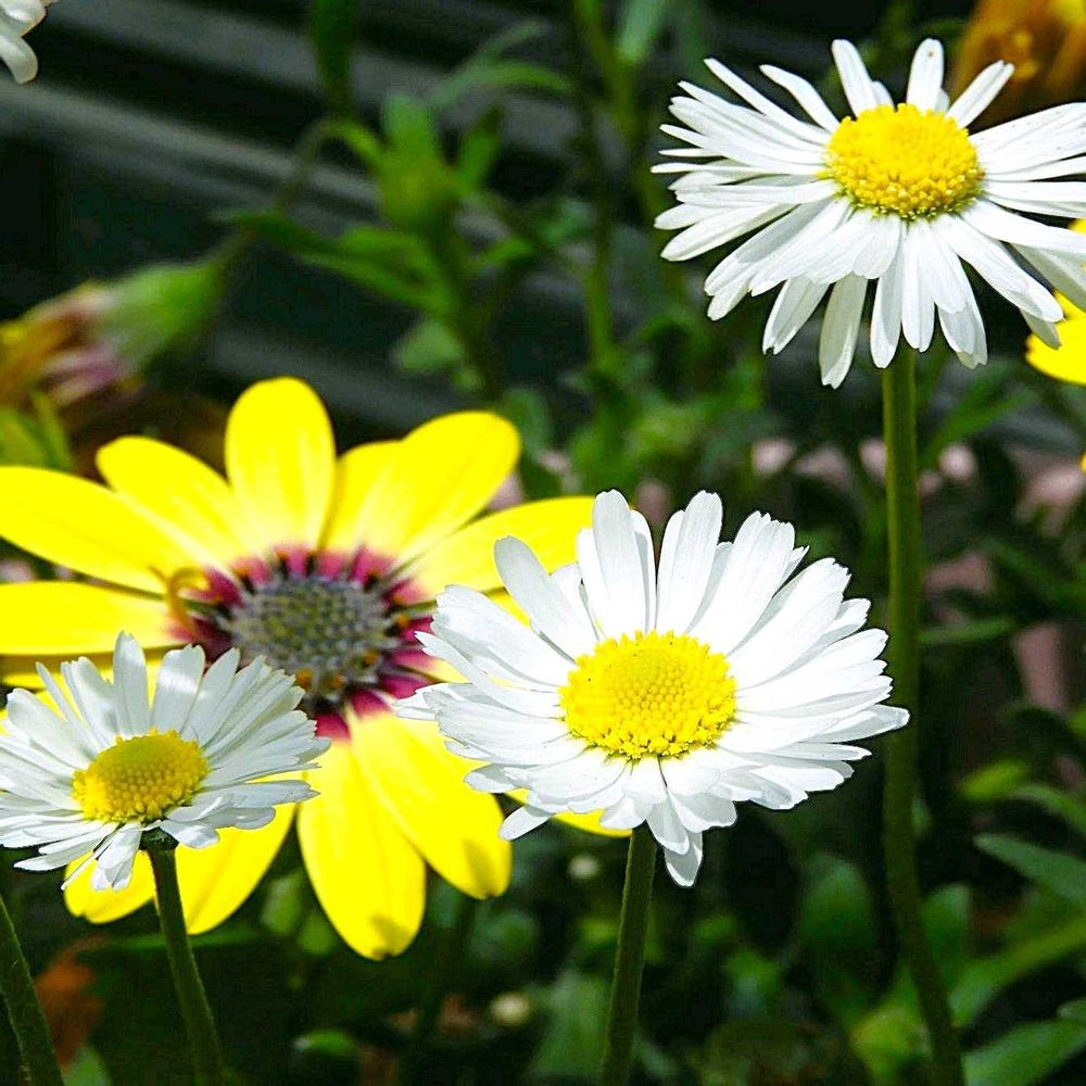🌱今回の主役はイングリッシュデージー🌼ですけど、オステオスペルマムと一緒の鉢で仲良く咲いてくれてます😆