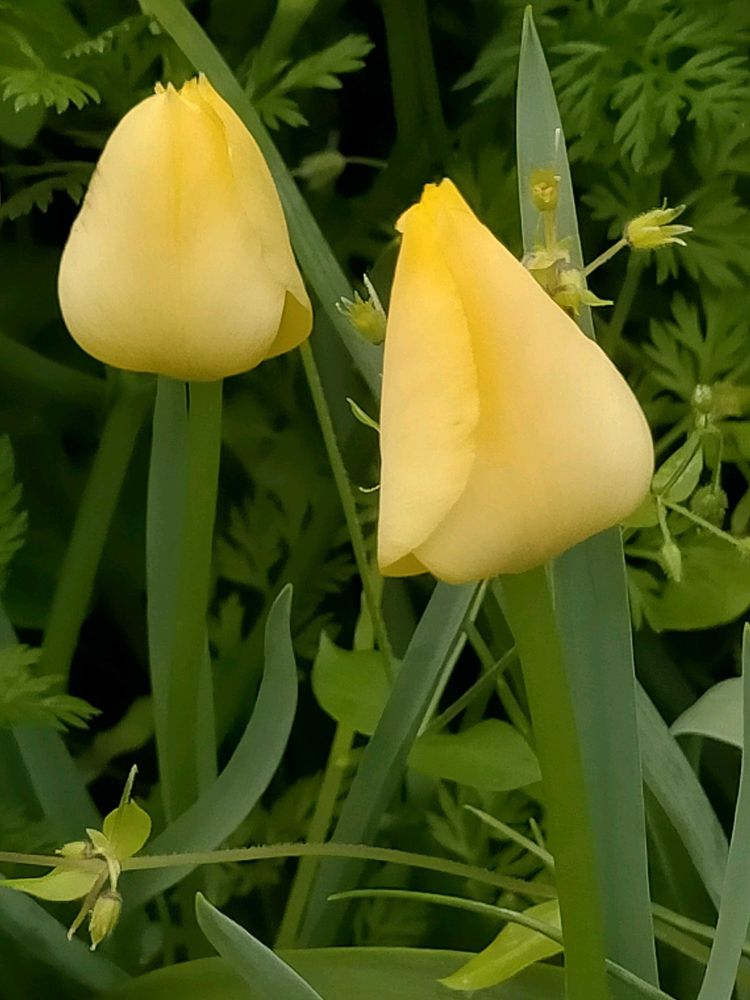 原種チューリップ4種目はクリーム色花が閉じていると3角なんです。可愛い💛💞🌷