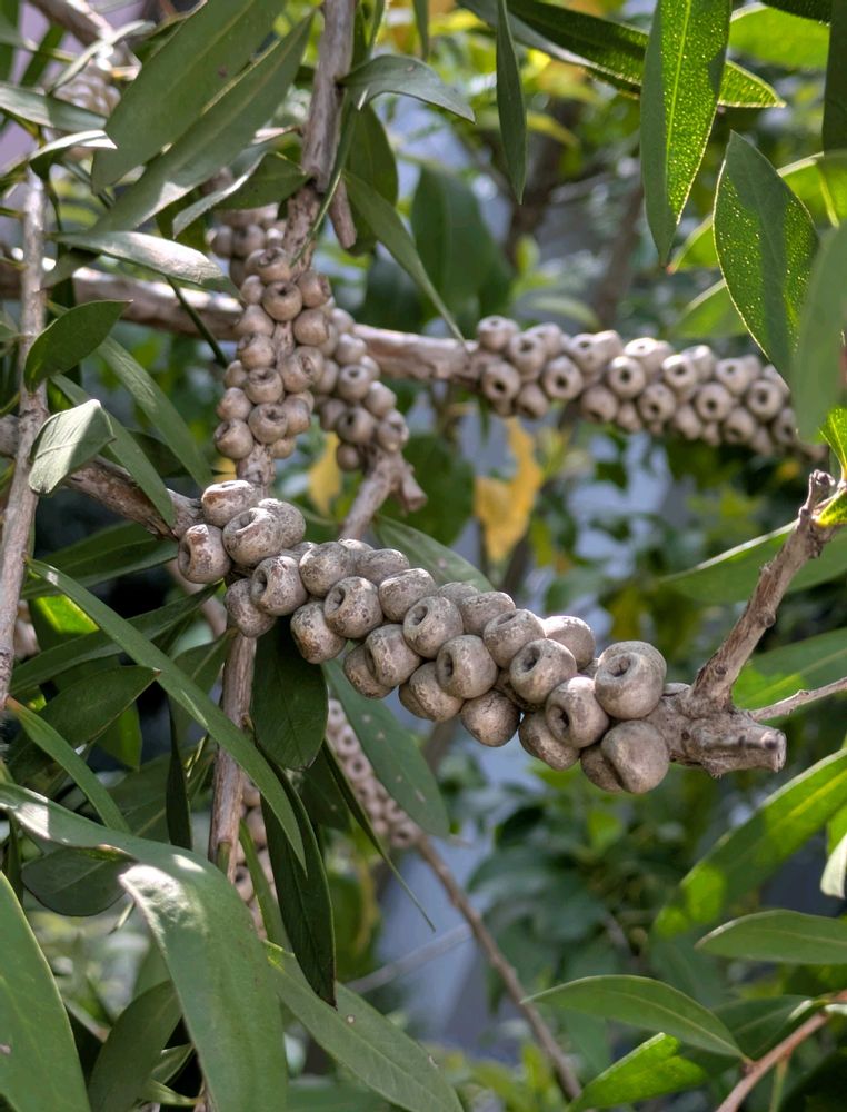 ブラシの木は蕾と一緒に実もあって…その形に違和感一杯!
