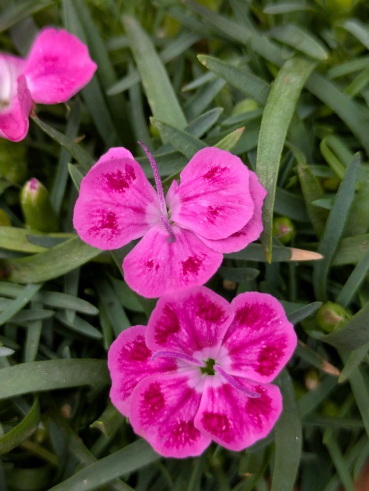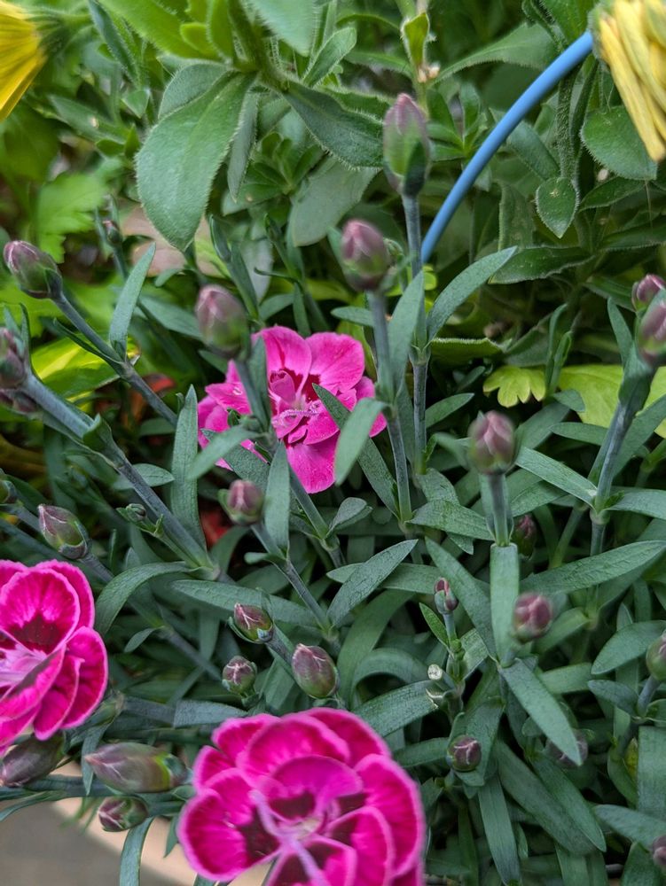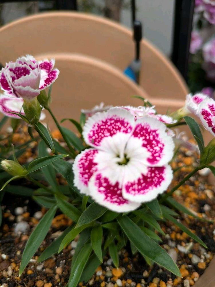 近所の家に咲いてるダイアンサスが大きくならずに、冬も株が残っていて、葉の感じが普通の撫子とは違うし、花の色合いも可愛いのがあるんですね。