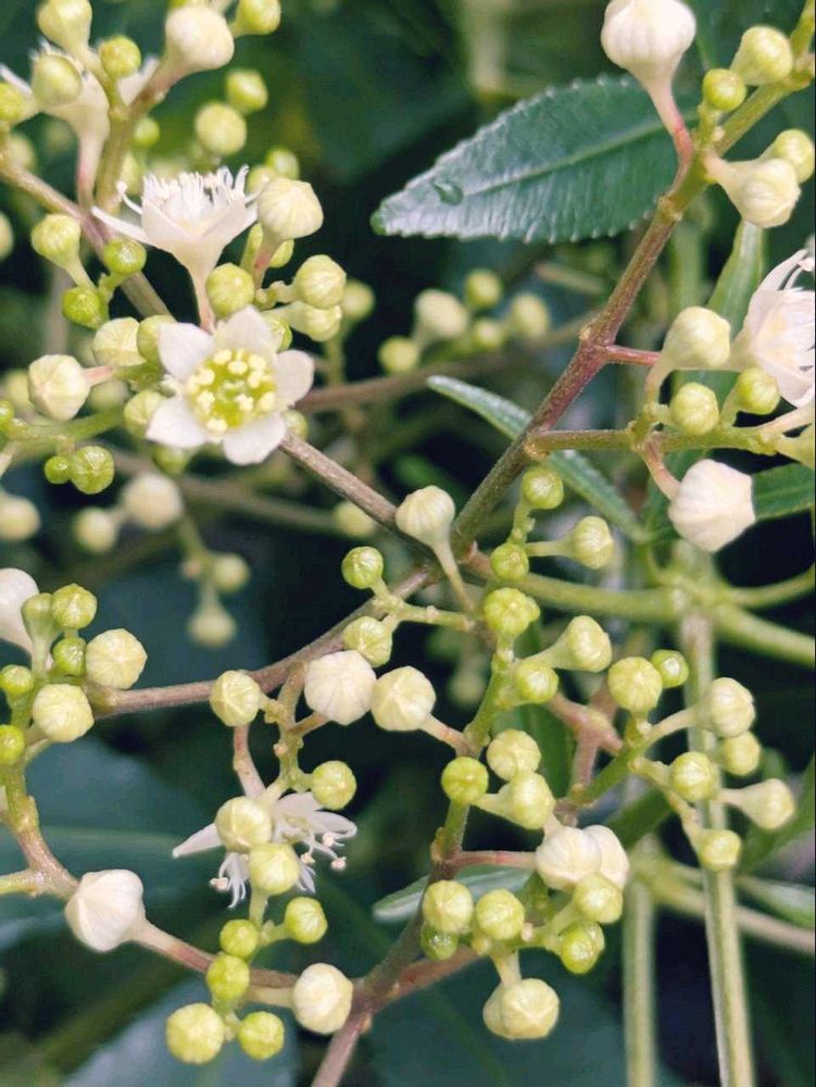 1️⃣サマークリスマスツリー小さな白のお花が咲いてきました☺️花ビラが落ちると萼が赤色になります🤩