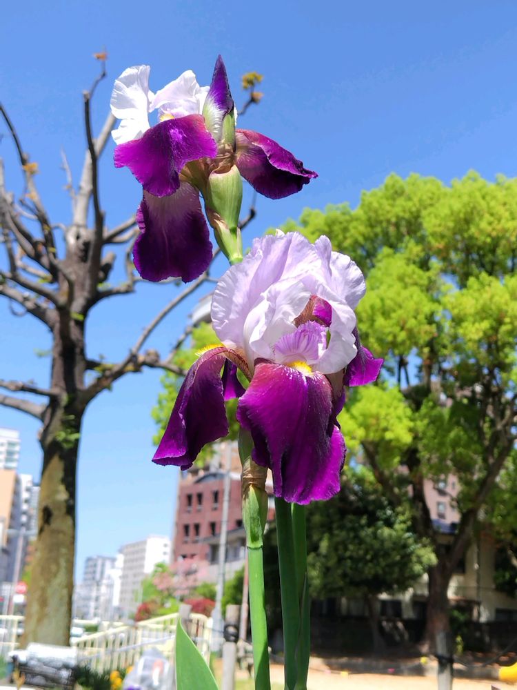 日本晴☀に花菖蒲?アヤメ?💙🤍💜