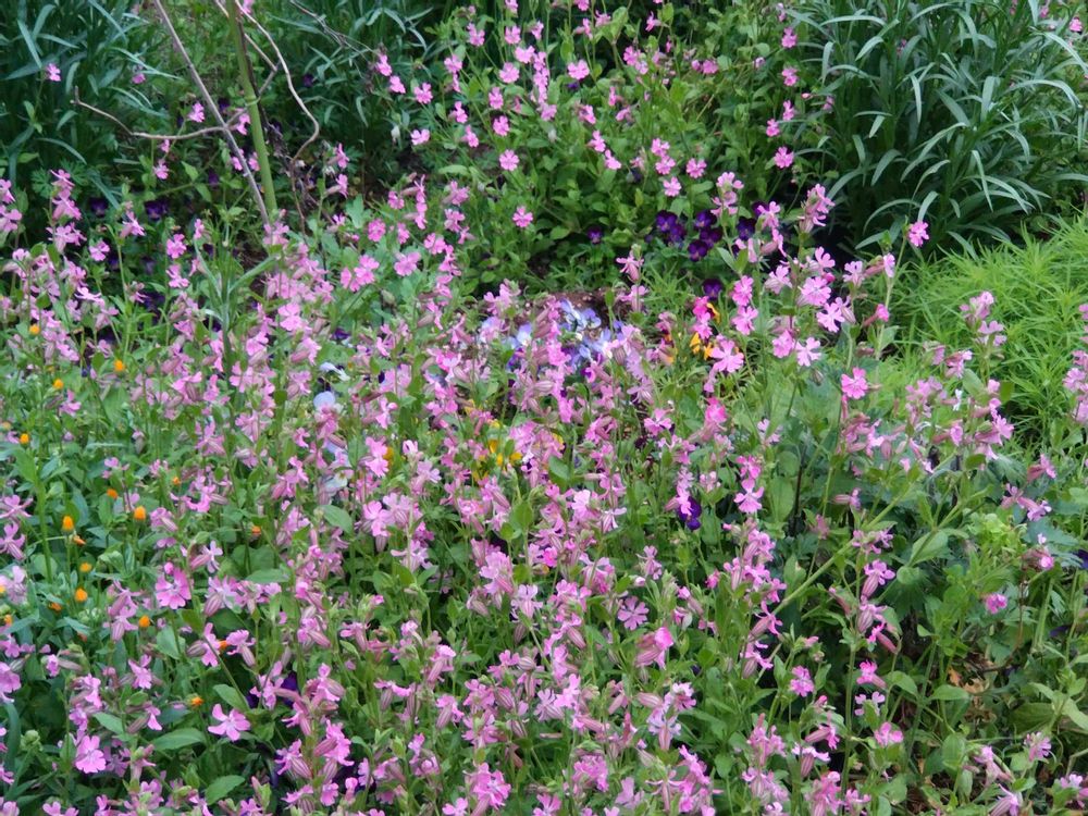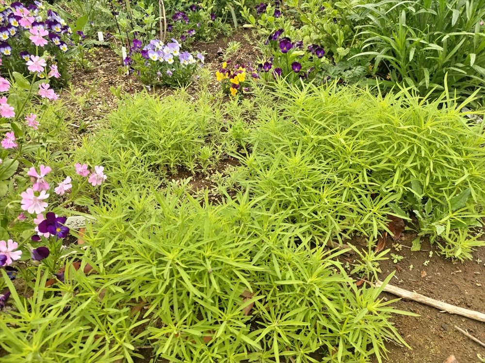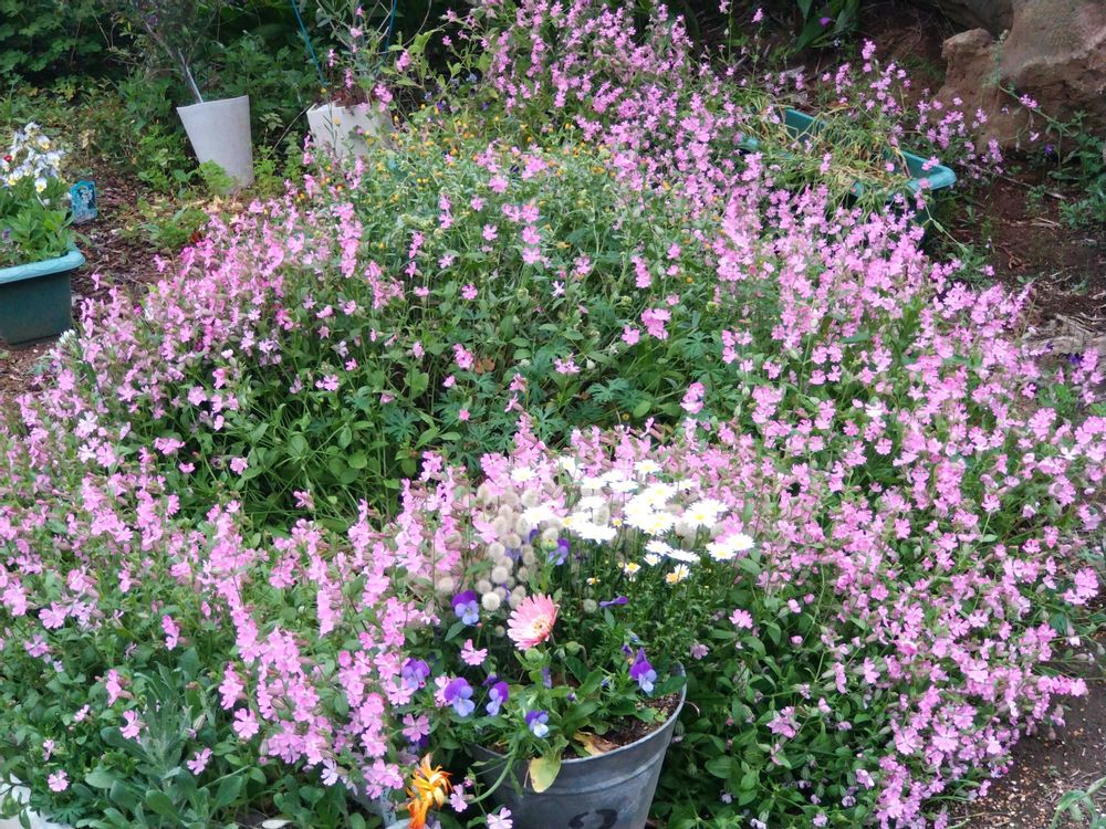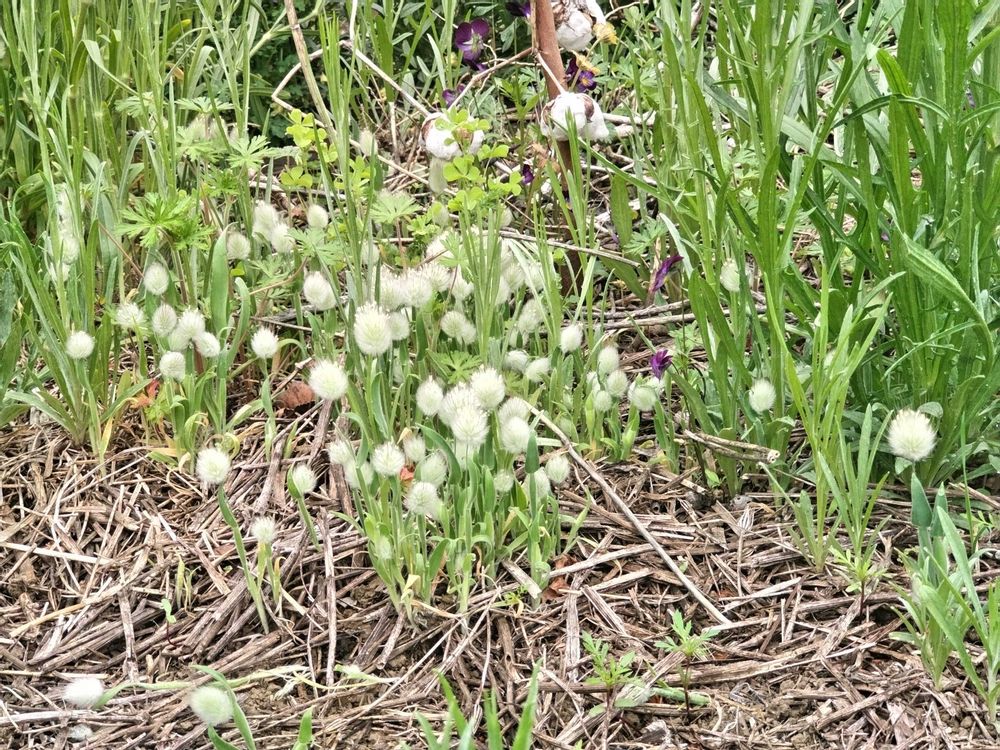 植えた訳でもなく零れ種から咲くラグラス、ここにもシレネたちの零れ種がたくさん❢コキアの零れ種