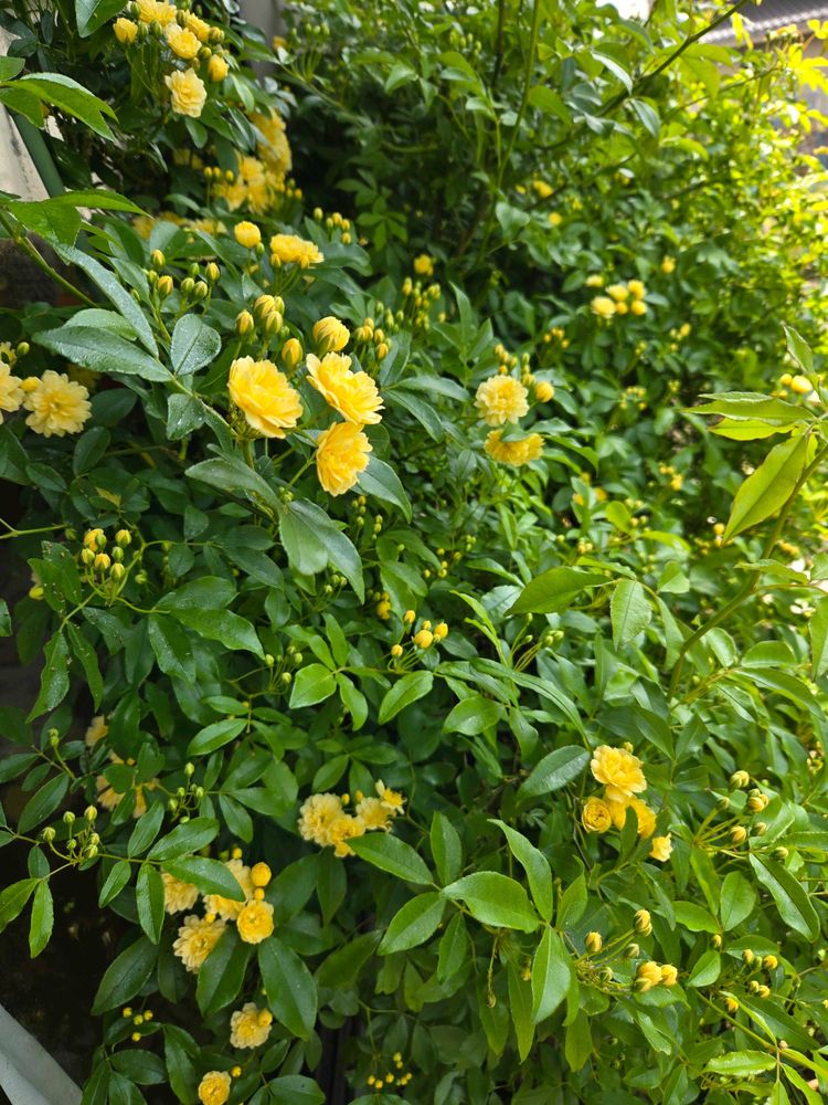 玄関前の黄色💛モッコウバラは満開💛💛💛