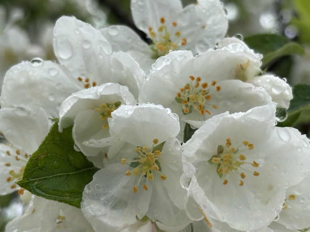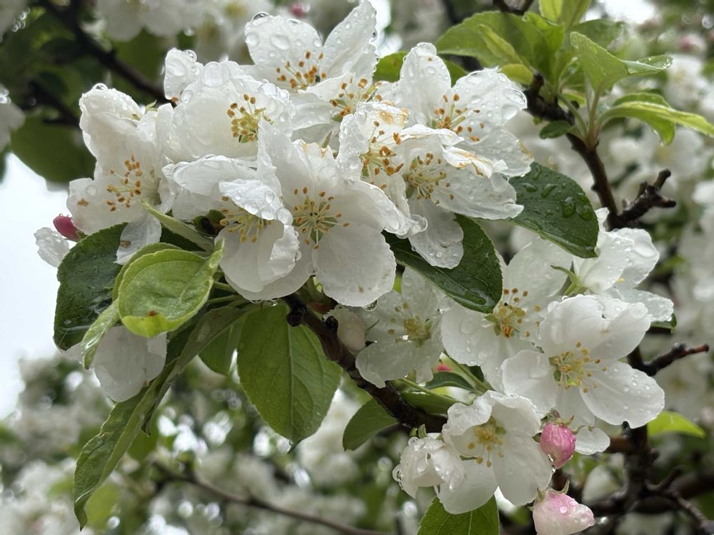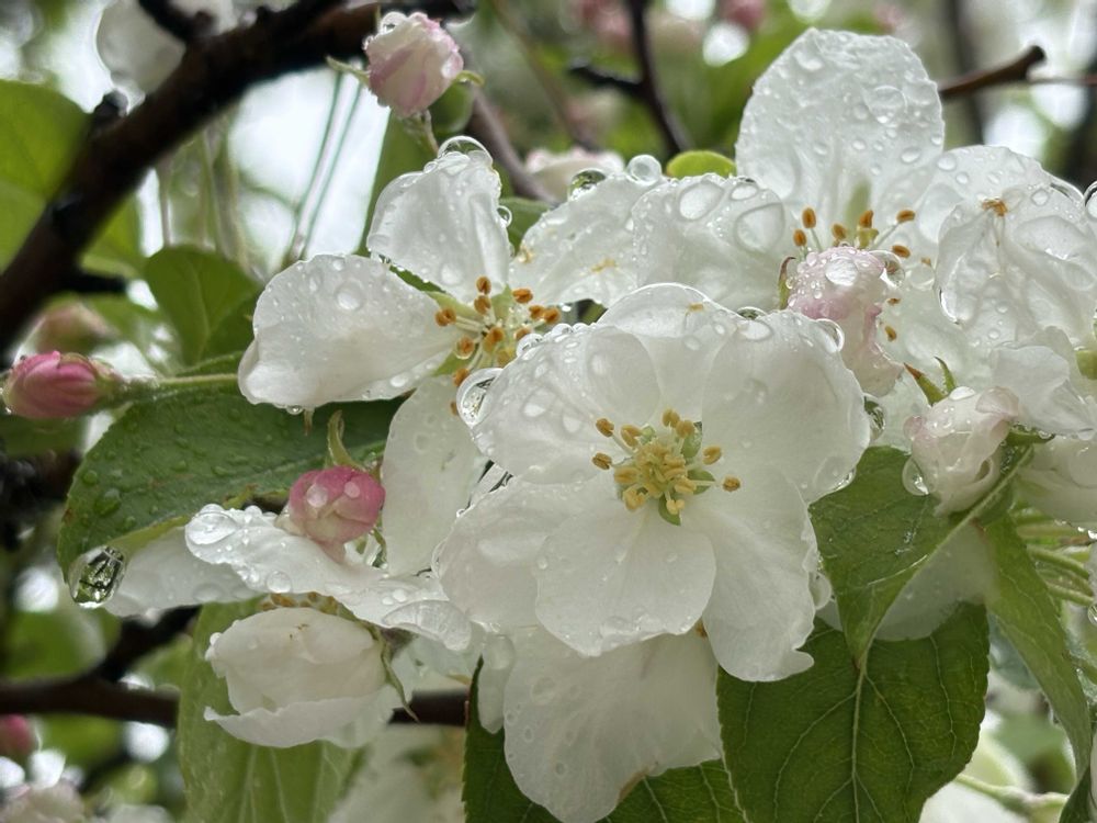林檎の花…と思って拝見しましたが、桜と思われたということは林檎の花より小さいということ。ヒメリンゴの可能性が高いですね〜🤗
