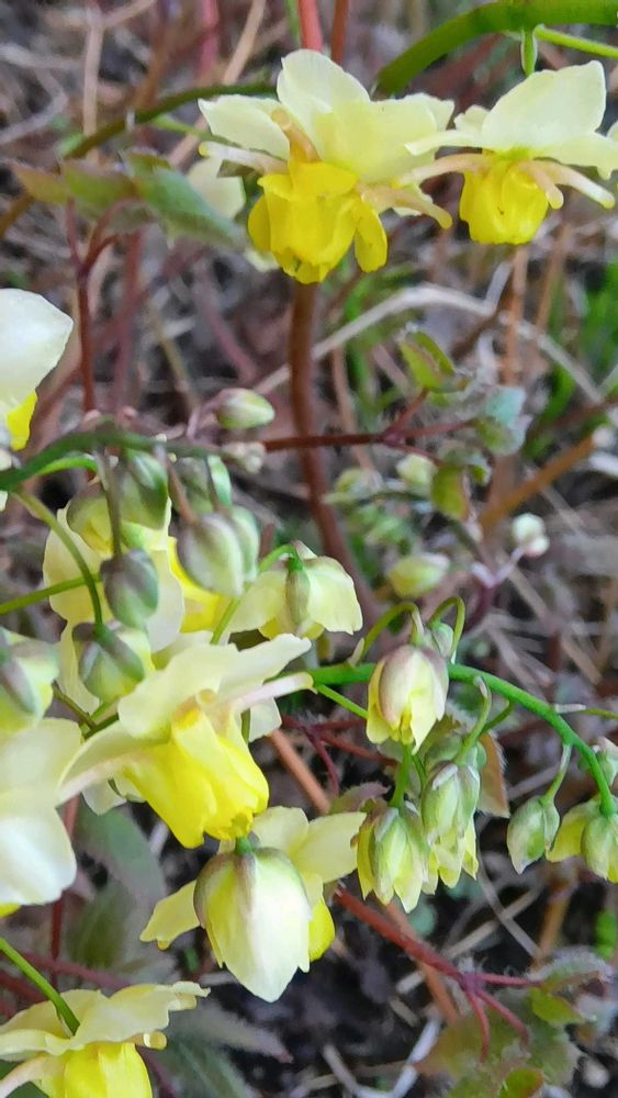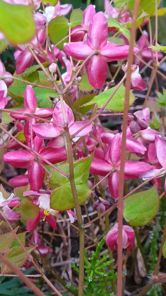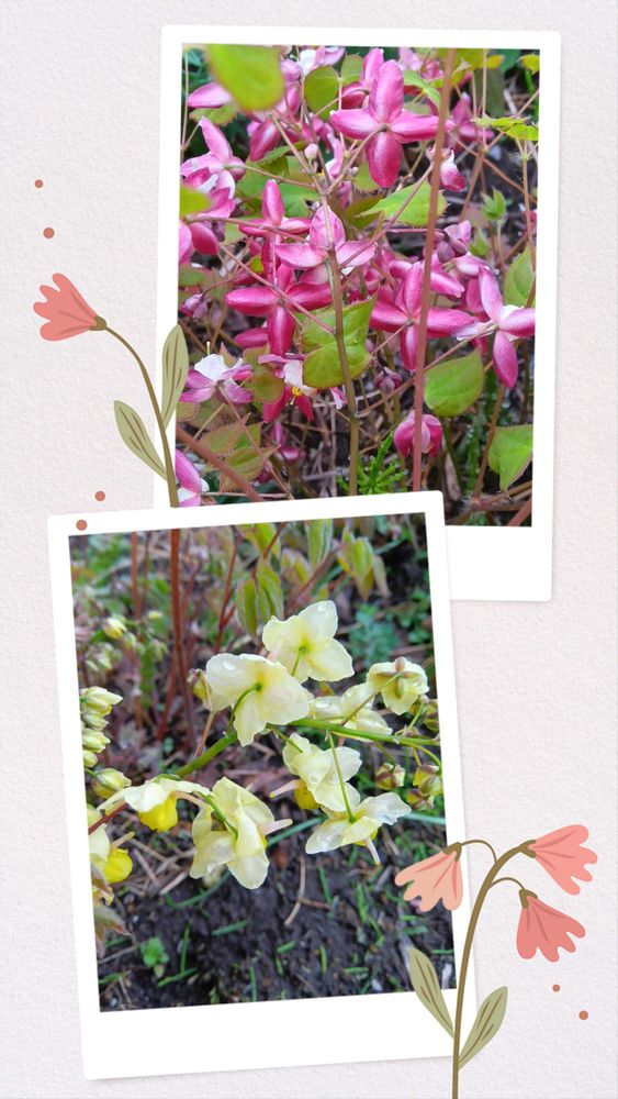 🩷🟡のイカリソウ😍😍💓キュ➸(,,♡-♡,,)➸ン♡ちっちゃなお花なんですね🙋🏻♀