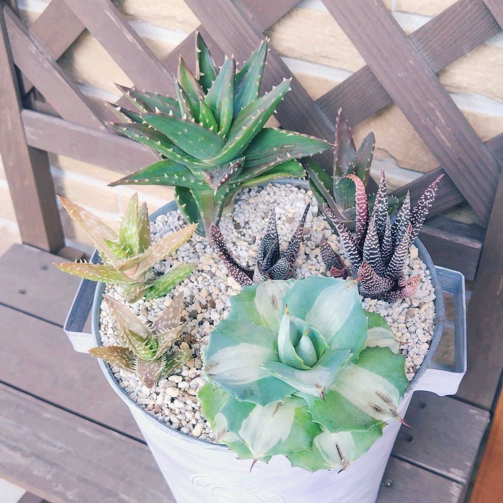 ありがとうございます꒰(៸៸›⩊‹៸៸)꒱♡❤アガベを寄せ植えになんて あまりしないと思うんですけど、子株を外した時に寄せてみたら なんか気に入ったので🎶