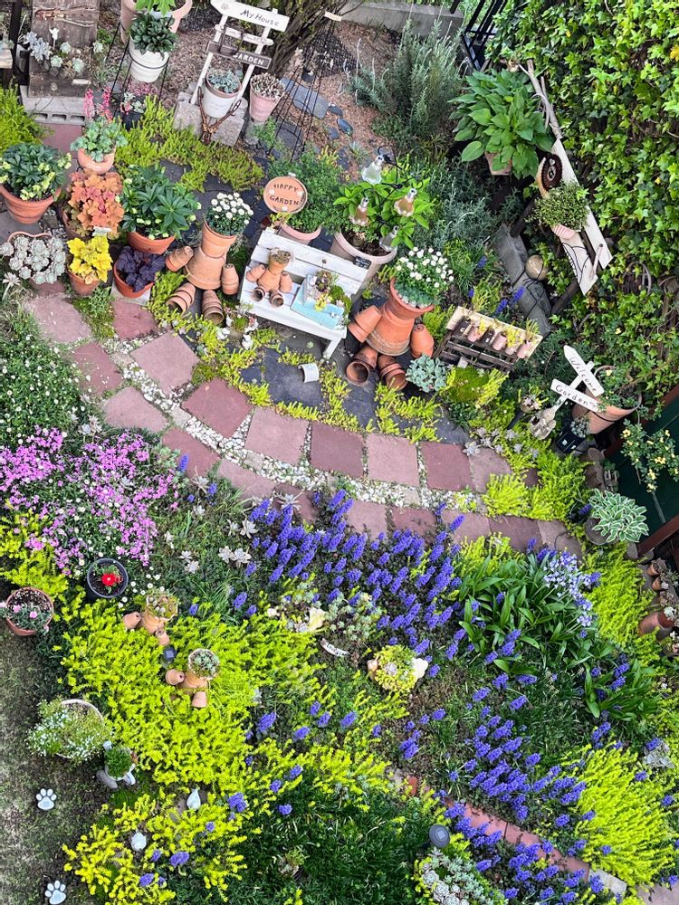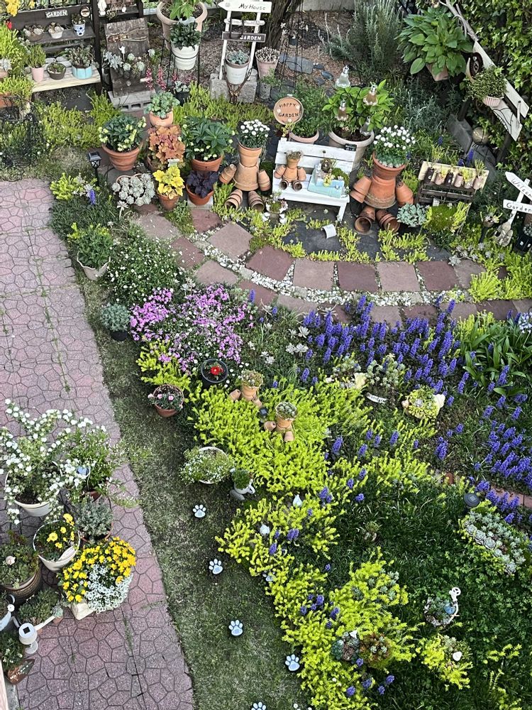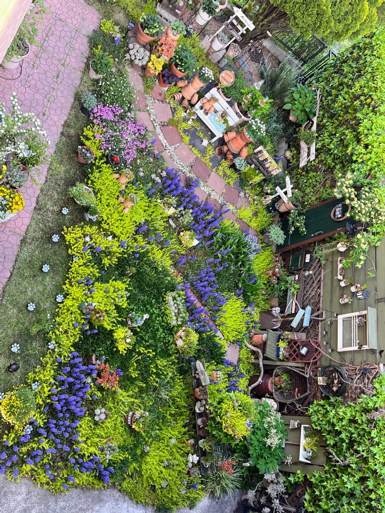 記録を兼ねてこの時期だけの賑やかな春の庭をベランダから撮ってみました🤳