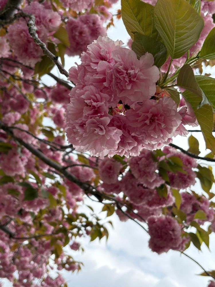 昨日見に行ったら八重桜🌸一昨日の雨で散り始めたようですが、まだまだキレイですね😍ピンクが可愛い💕