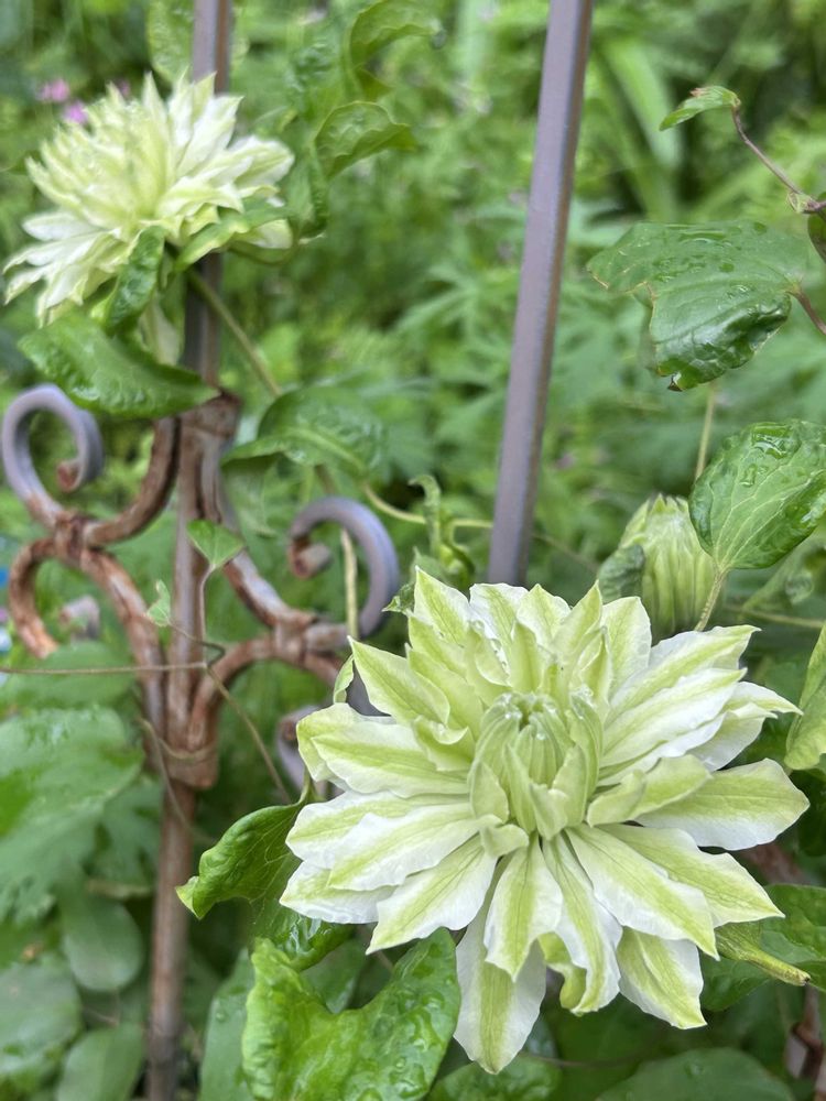 グリーンと白のコントラストが素敵なクレマチスです💚🤍