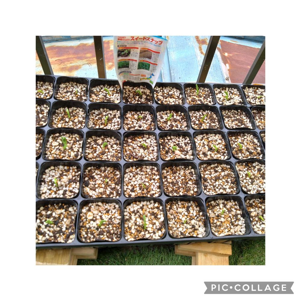 今日は発芽状況について報告です。スナップエンドウ、ニューメロン、甘いメロン、発芽が始まりした。