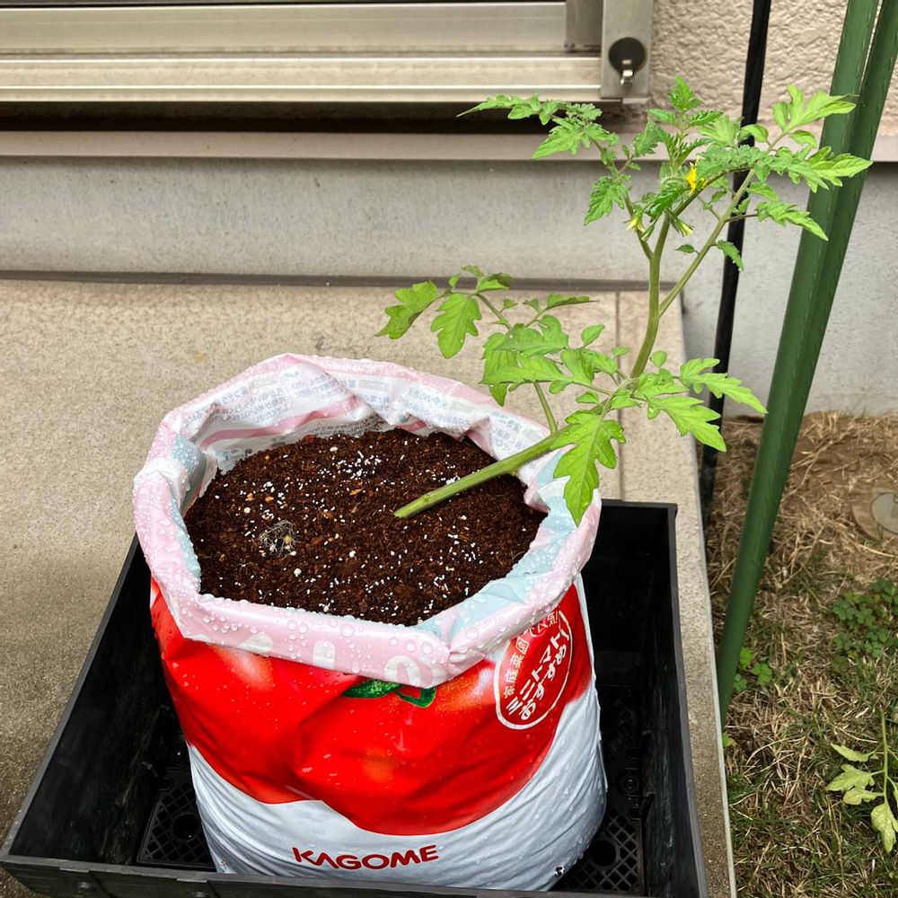 鉢といえば、今年はなんと!トマトバッグが定価の半額以下で手に入ったので、チャレンジしてみます。斜め植えも初挑戦。ミニトマト・ピンキーちゃんです。