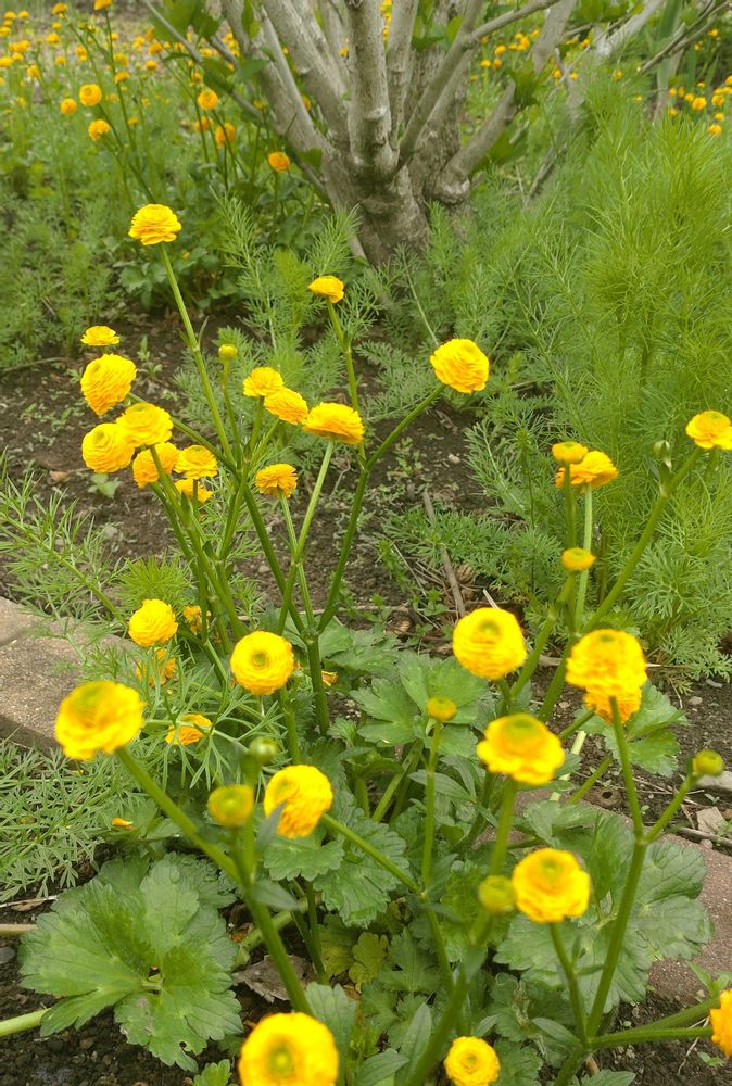 ゴールドコインはラナンキュラスなんですね。球根ではなくランナーで増えるので自然に増えていくんですね。園芸店で売ってるのを見たことあります。