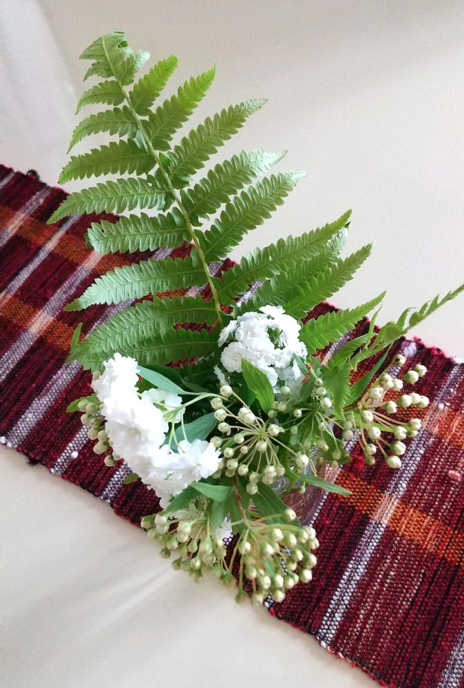 庭のシダとコデマリをダイニングテーブルに🍀爽やかです🍀