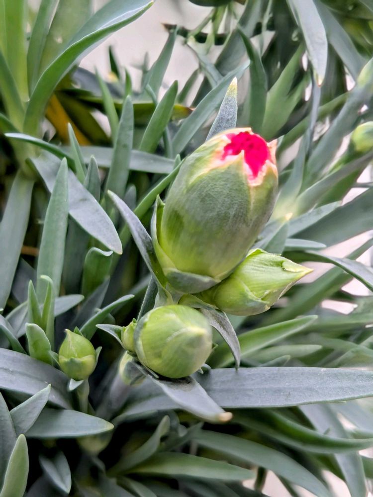 昨年、娘から母の日にプレゼントされたダイアンサス アイラブユーが、冬越しし沢山の蕾をつけ開花💞