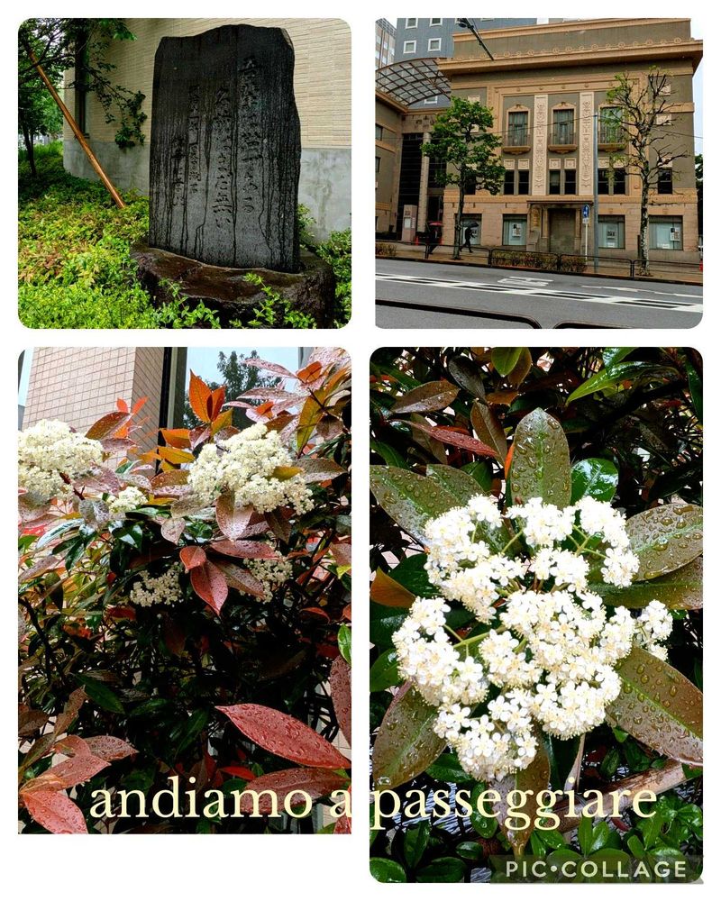 夏目漱石が幼い頃近くで学んだという碑が立っていました。