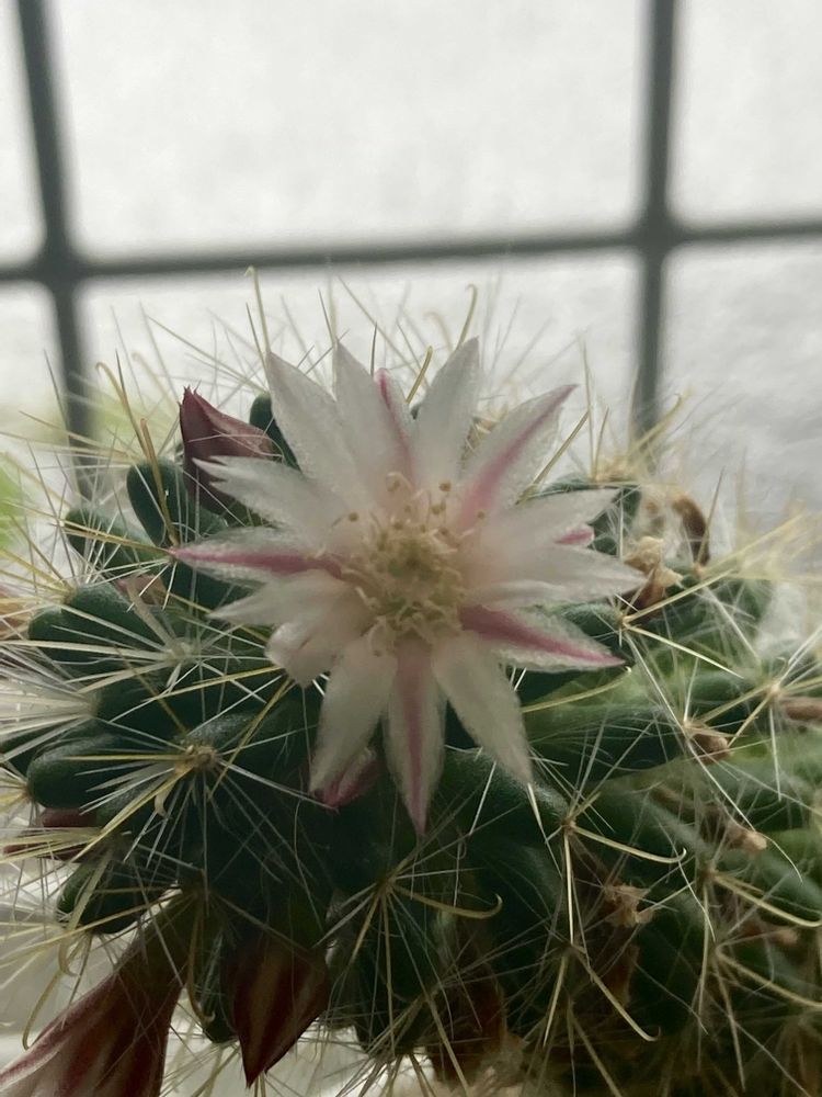 さて、我が家の100均からお迎えしました【サボテン🌵マミラリア】がお花を咲かせました〜🎵