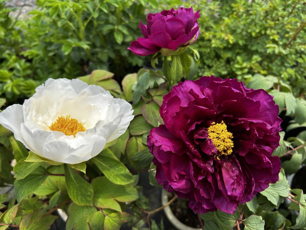 我が家の牡丹、また一鉢開花しました!こちらは品種名「白王獅子」花色は白です。
