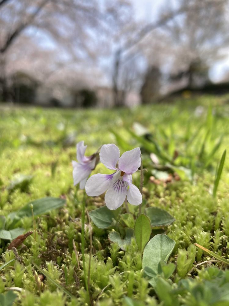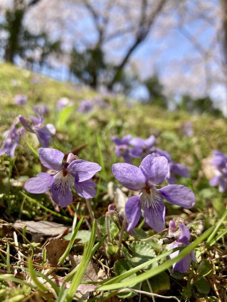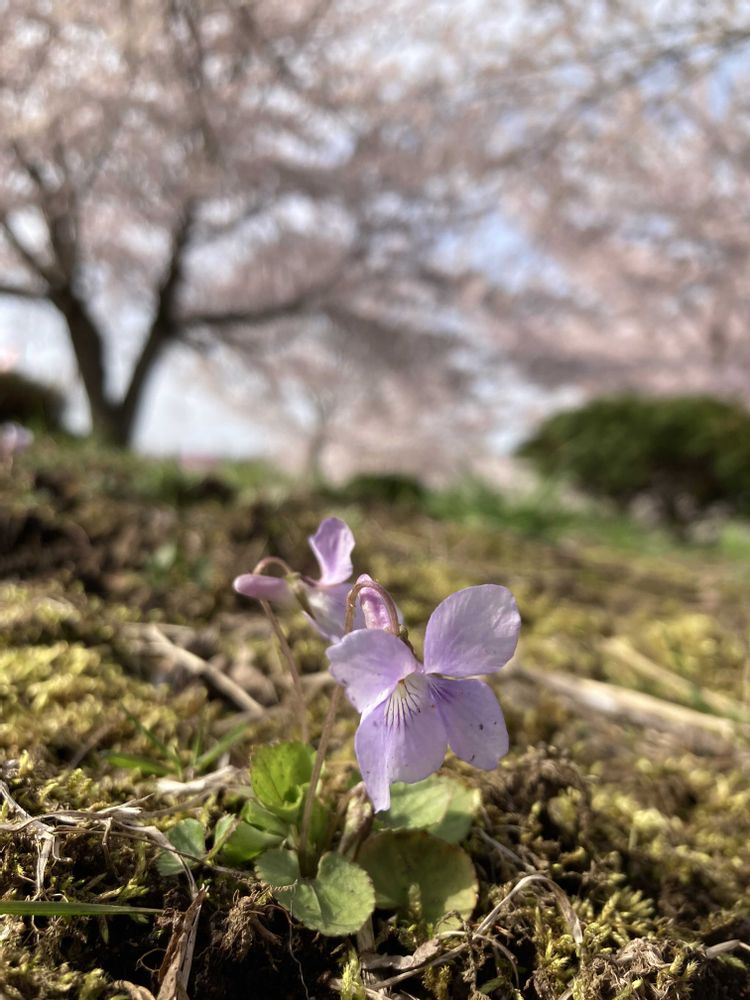 スミレを見つけるとついつい写したくなり、桜とのコラボ。