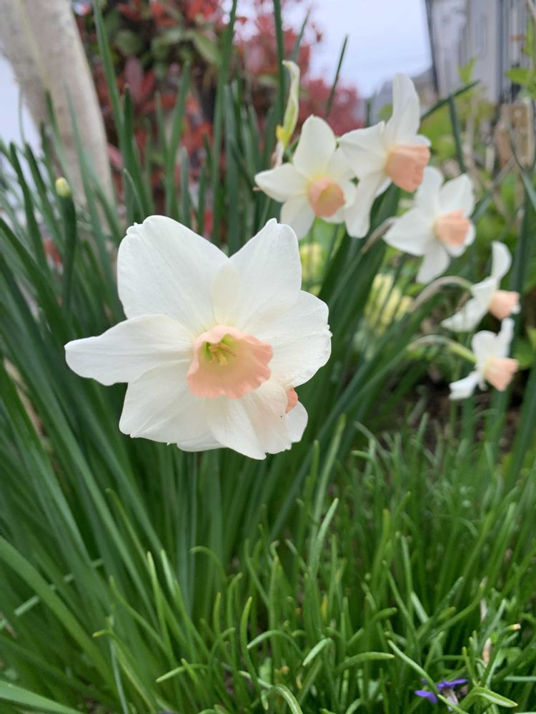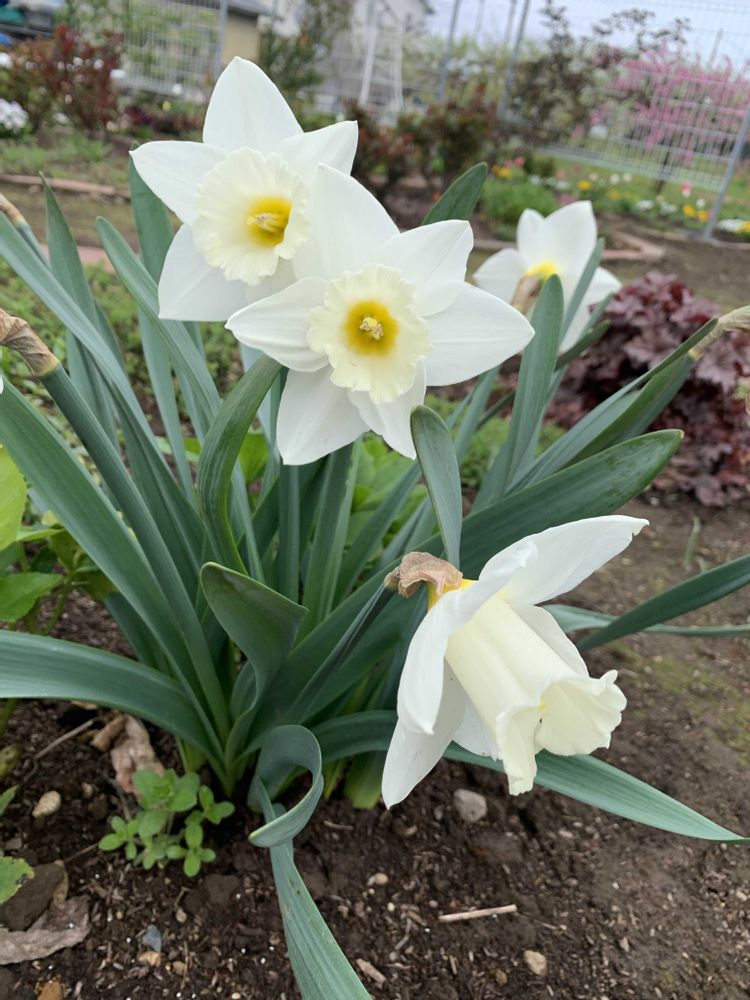水仙の向こうにチューリップ❓が咲いてるように見えます。これから薔薇の開花に向かって日に日に変化のあるお庭が楽しみですね❣️