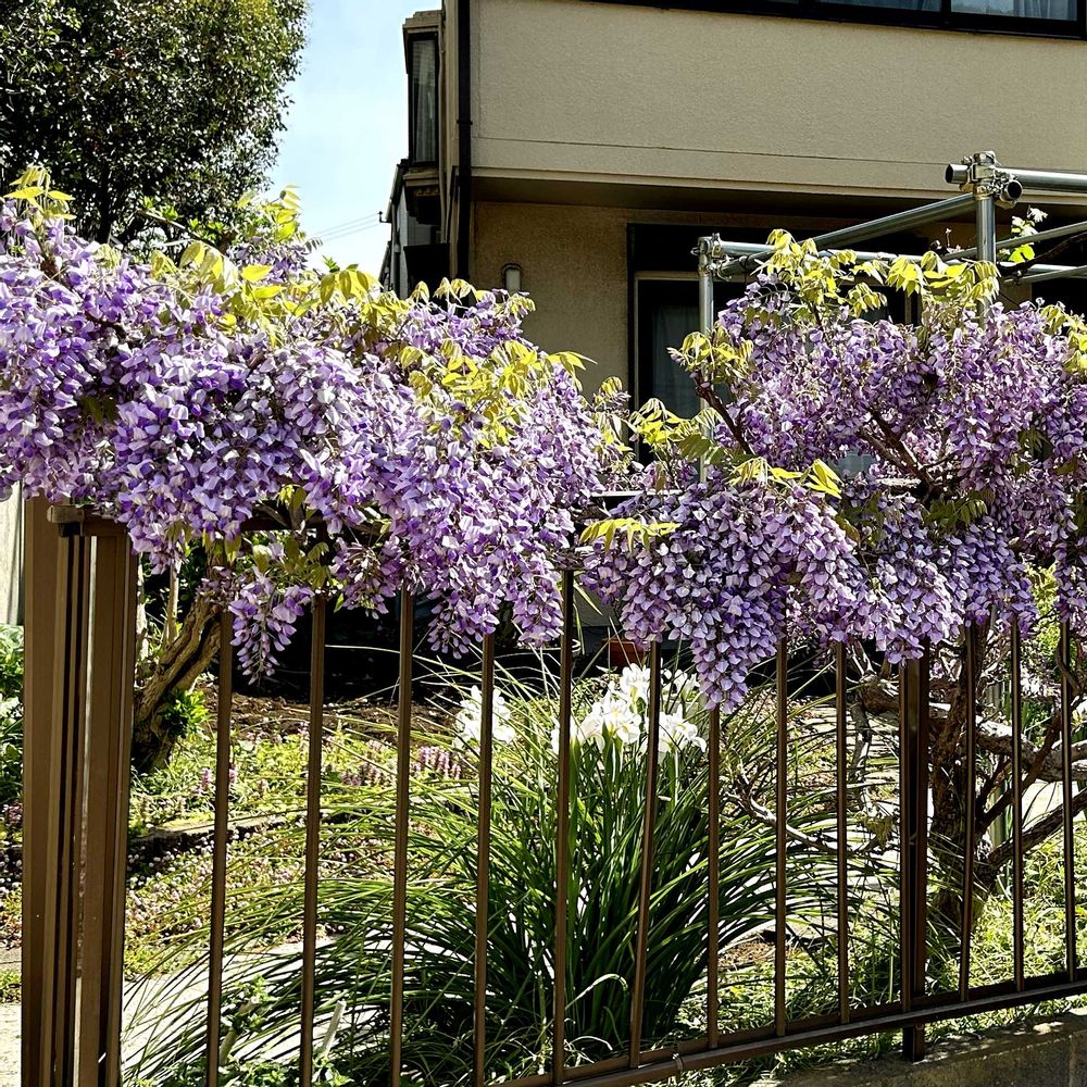 今年も藤の花が満開になりました。お庭で他の木の剪定中に、うちの前を通りかかったご婦人に「藤の花が綺麗ですねー!一気に咲きましたね😊」ってお声掛けいただきました✨頑張って剪定した甲斐がありました😊