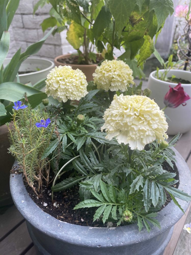 アフリカンマリーゴールド バニラ,鉢植え,開花の投稿画像