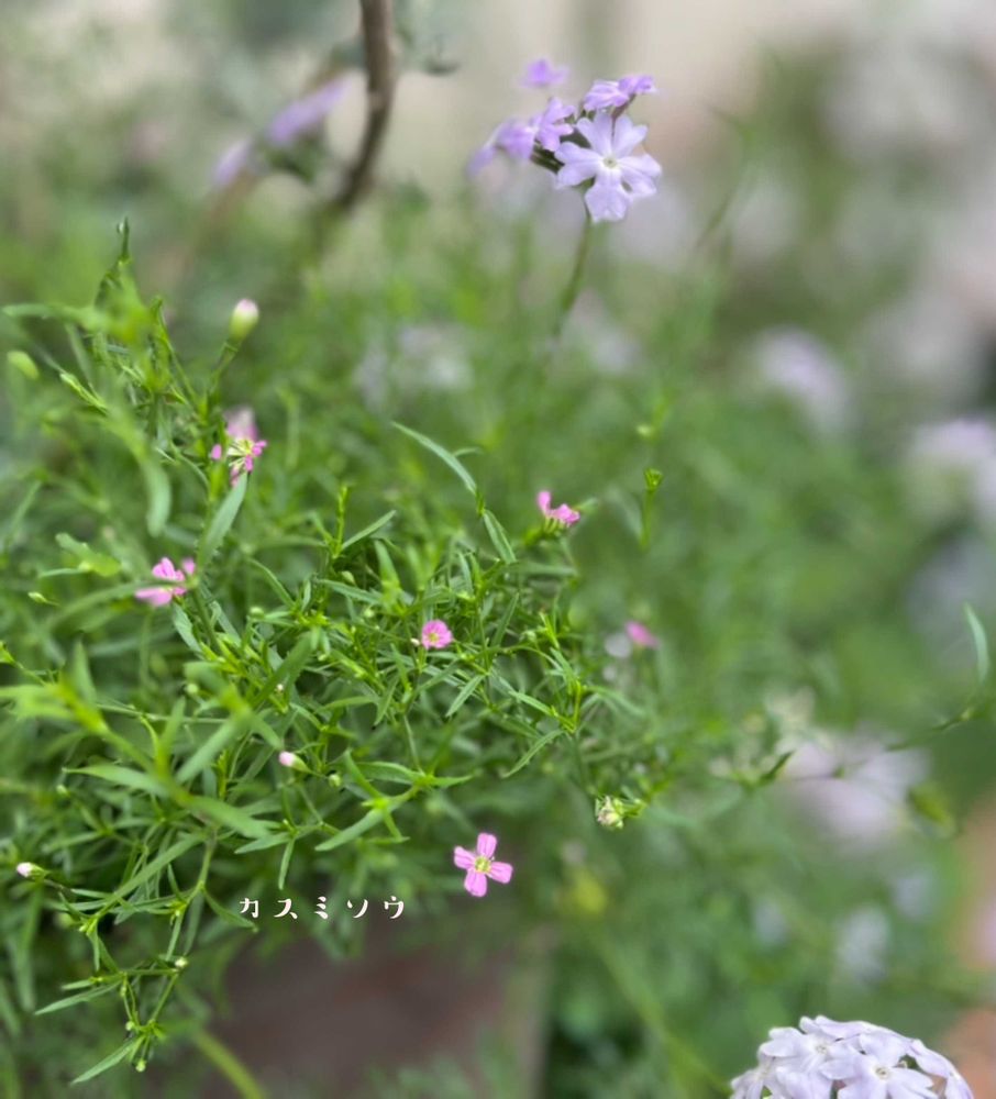 カスミソウの溢れ種も残っていたみたい🤍鉢をクルリと回すと、ピンク色のカスミソウも🌱まだ成長中です💗