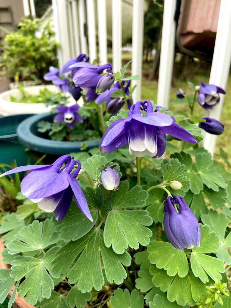 オダマキさんが鉢いっぱいに花を咲かせてます。零れ種からドンドン増えて、放ったらかしなのに毎年現れてくれてる元気いっぱいの子💜💜💜💜 やっぱり日本のオダマキが良いね👍😊♪(๑ᴖ◡ᴖ๑)♪