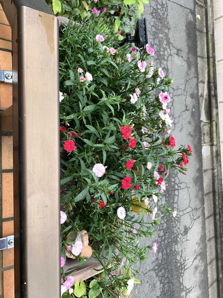 玄関先の『ナデシコ』が色とりどりに咲いてますd(^_^o)