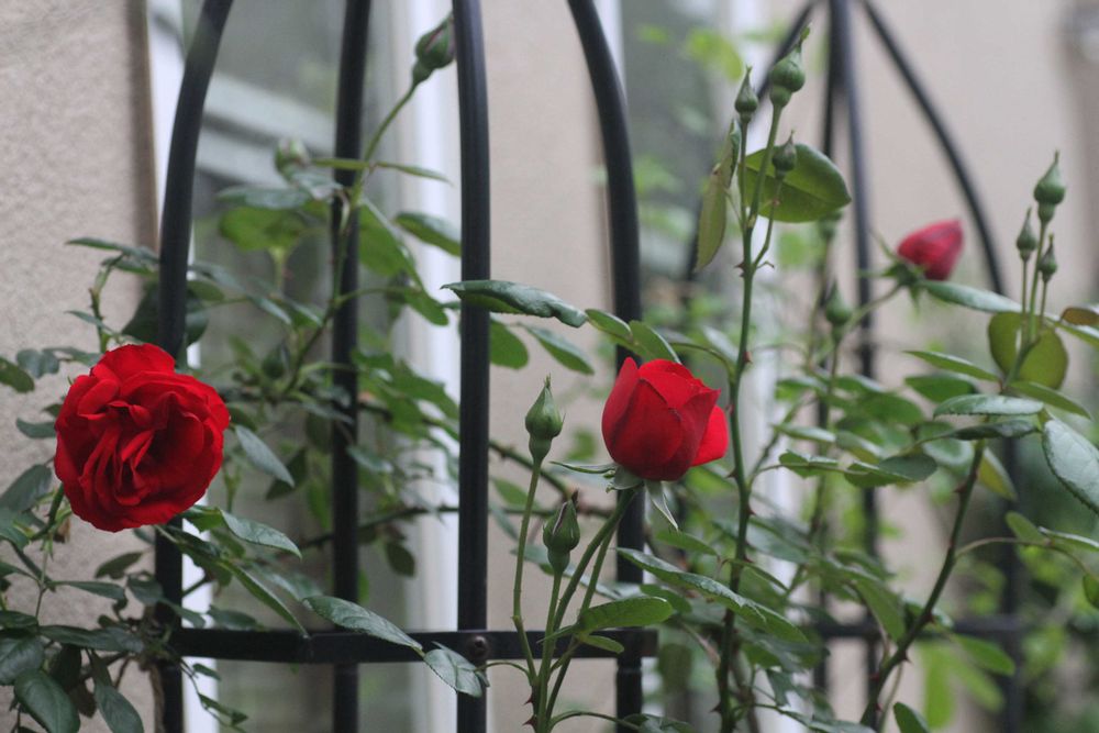 赤いバラ、娘のお庭にフロレンティーナを植えたんだけど、うちにはその挿し木を今年持ってきて、こんな赤いバラも良いですね🥰