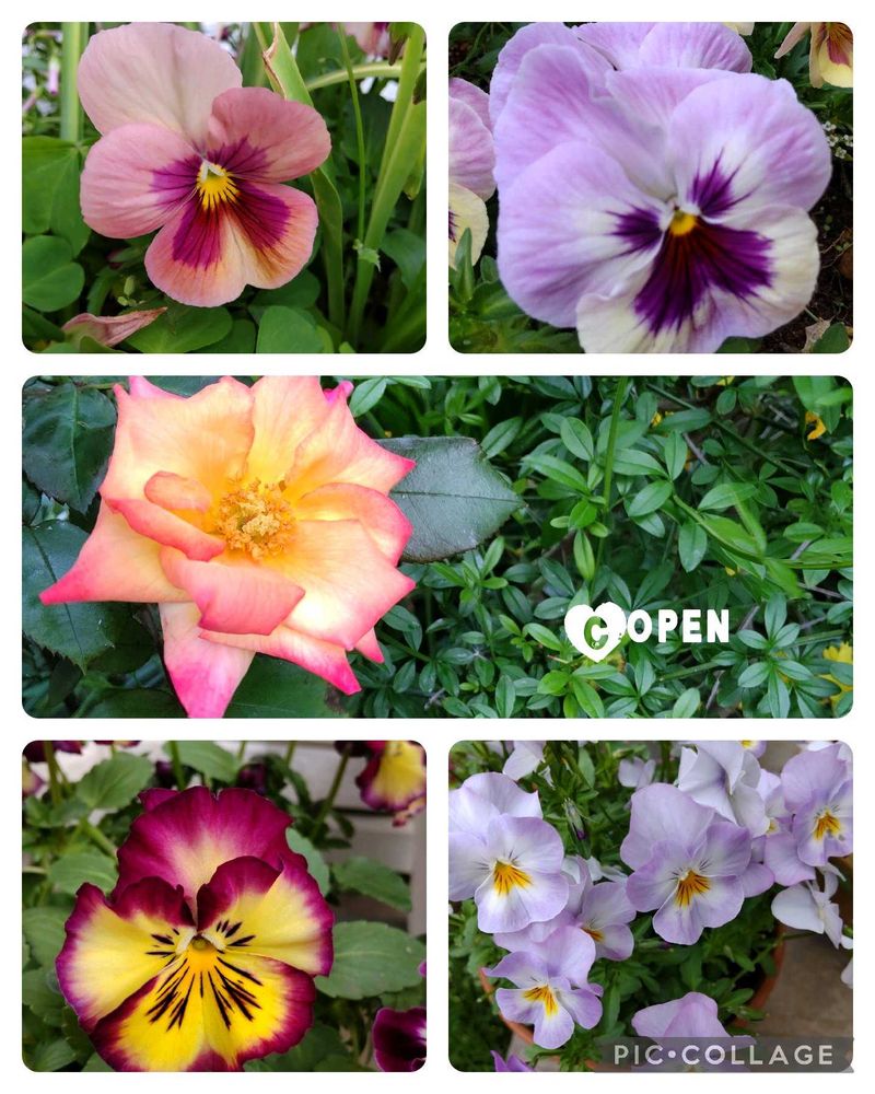 可愛い〜コラージュ 可愛い〜パンジー ちゃんの中で 可愛い〜バラちゃんも