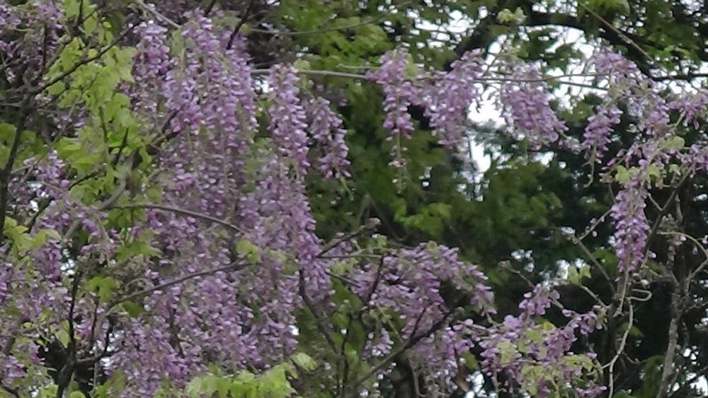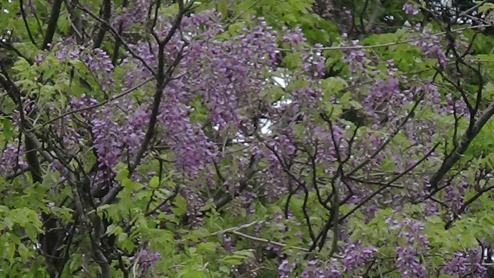 散歩道(京都丹波亀岡 亀山城址)に咲くヤマフジの花が、満開になっていました。