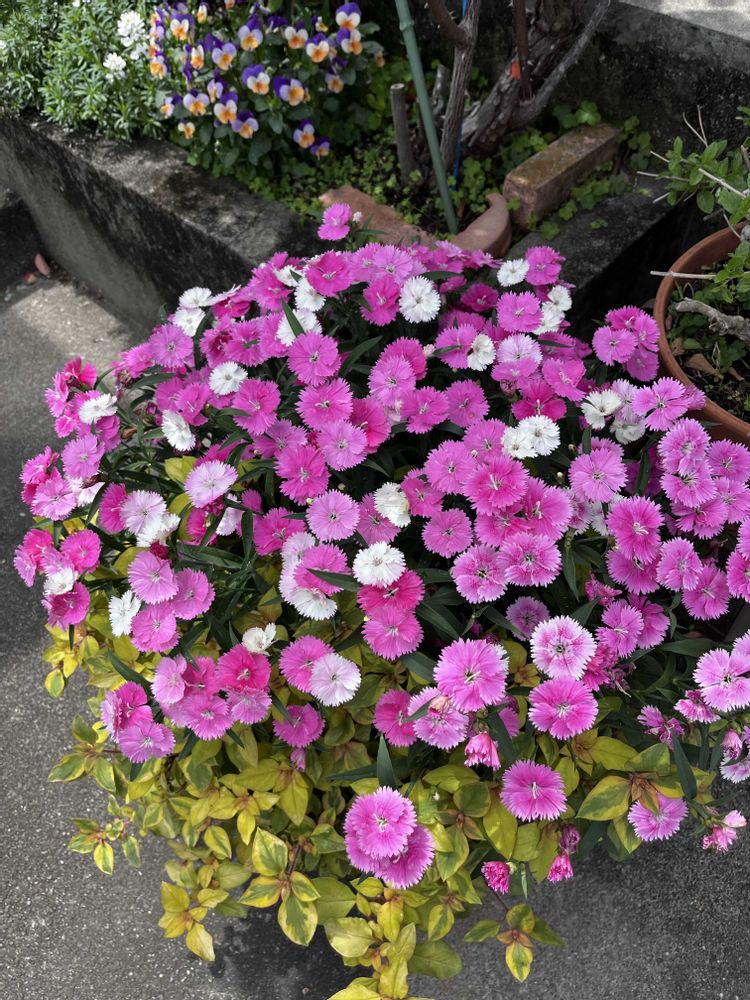 キキョウナデシコは昨年の種がこぼれて鉢いっぱい芽が出て🌱