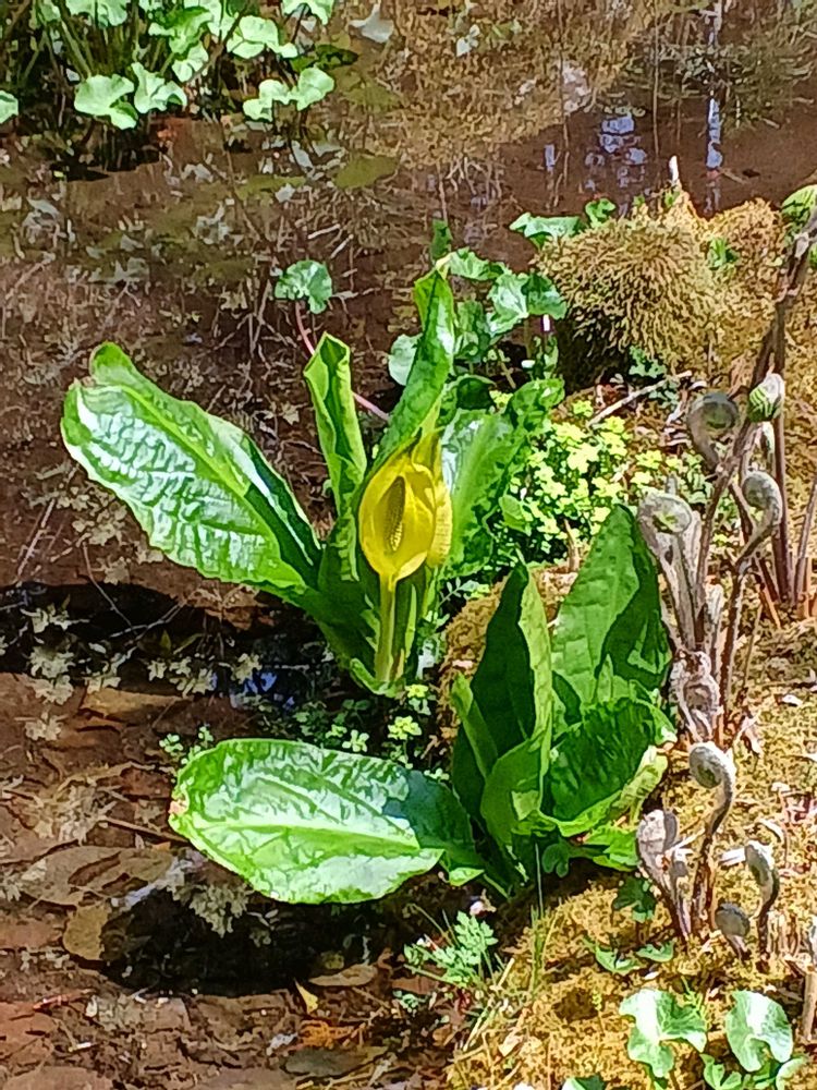 ①北米で見られる💛のミズバショウが咲いて輝いていました😲 初めて見ました🎵