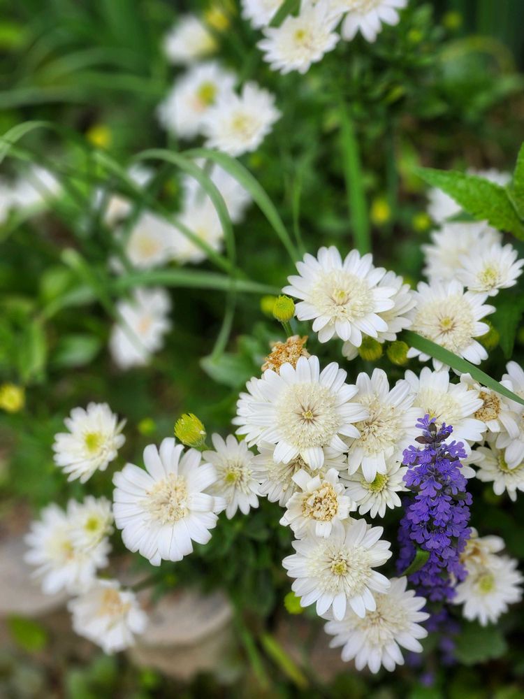 プランターのオステオスペルマムと白オステオスペルマムは挿し木の子、すごーい😆⤴