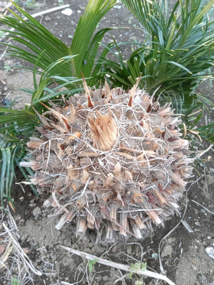 強い寒さで傷んだ坊主の蘇鉄とザミア。また綺麗な🌴葉がフラッシュする楽しみ。