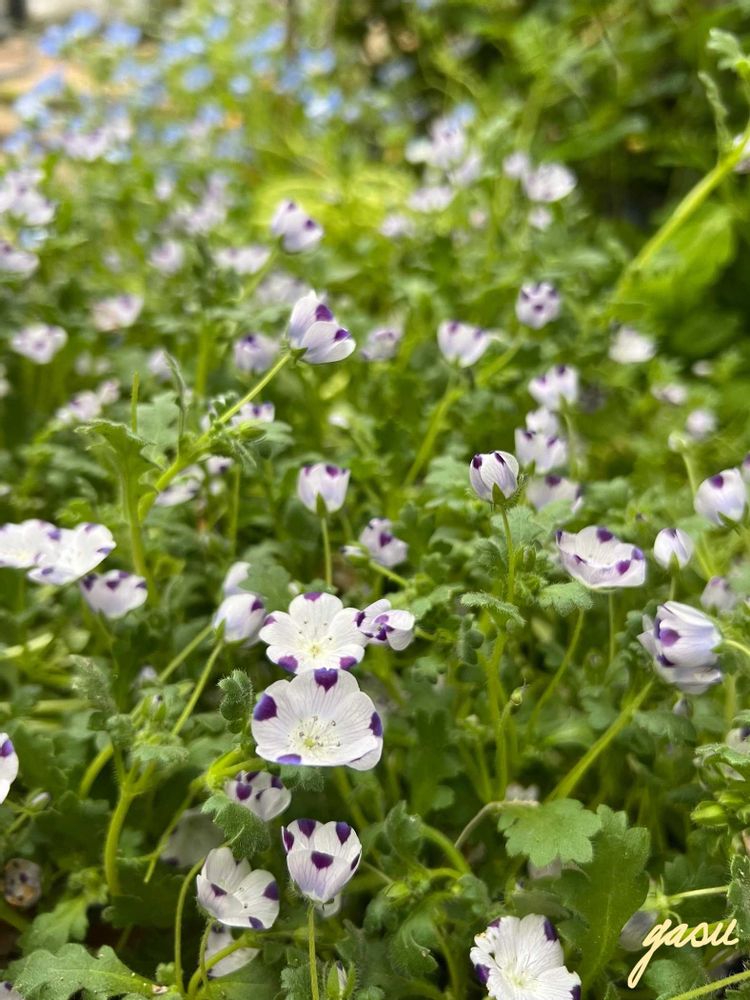 ⑤チェリーカクテルの南側では今頃ネモフィラマクラータが元気に♪