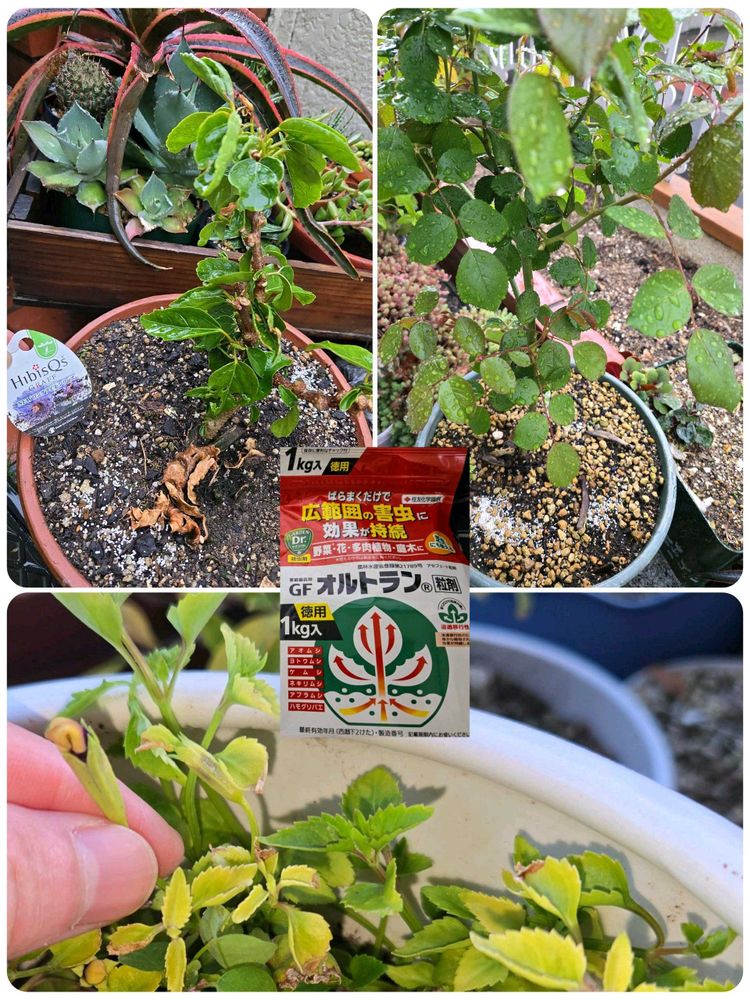 コガネムシの幼虫が時間差で成長?孵化して、薔薇の成長がイマイチだったイングリッシュローズにも先にオルトランを~(pq゚∀゚*○)