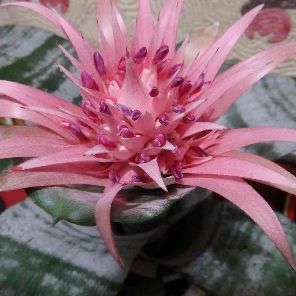 シマサンゴアナナスについてですが、常緑の多年生の着生植物。パイナップル科の熱帯植物で春~秋は直射日光はなるべく避け、室内の明るい日陰。冬は室内の窓際に置きレースのカーテン越しに日光を当てるようにします。花後には子株が出来るようです。