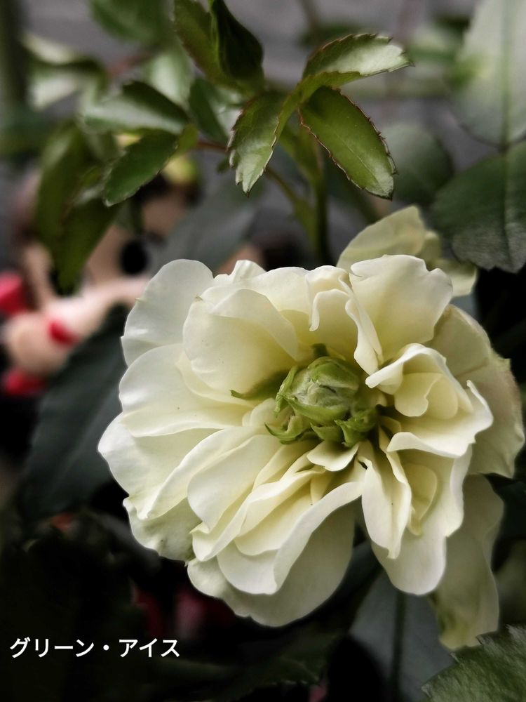②滋賀の花友さんに頂いたグリーン・アイス(ミニ薔薇)が咲きました!花色が白からグリーンに変わるそうです