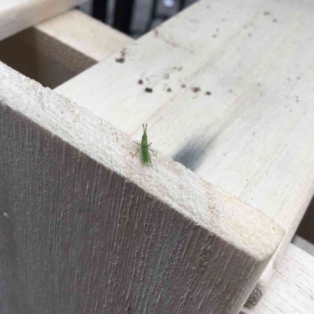 すのこの棚にいた小さなバッタ